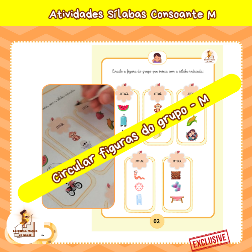 As Atividades com as Sílabas da Consoante M trazem uma abordagem prática e envolvente, perfeita para ajudar os alunos a explorar os sons dessa consoante. Incluem exercícios de formação de sílabas como (MA, ME, MI, MO, MU), além de atividades que conectam estilos de escrita (imprensa e cursiva) e figuras para estimular o reconhecimento visual. Os alunos terão a oportunidade de criar palavras, completar frases e participar de desafios lúdicos que reforçam o aprendizado. Com jogos e exercícios criativos, essas atividades tornam a prática divertida e ajudam na fixação dos sons e na ampliação do vocabulário.