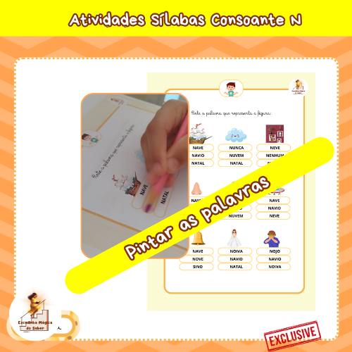 As Atividades com as Sílabas da Consoante /N/ foram pensadas para tornar o aprendizado leve, criativo e cheio de interação. Aqui, os estudantes vão explorar as sílabas (NA, NE, NI, NO, NU), associando-as a palavras e imagens que despertam a imaginação. Com jogos, desafios e atividades práticas, os estudantes podem praticar diferentes estilos de escrita (cursiva e imprensa), criar palavras e até completar frases divertidas. Tudo isso com uma abordagem dinâmica, que transforma o aprendizado em uma experiência marcante e cheia de significado.