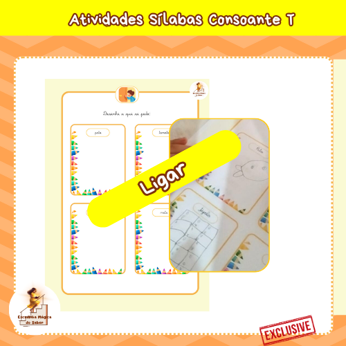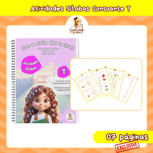 Atividades com as Sílabas da Consoante T foram desenvolvidas para ensinar de forma dinâmica e interativa. Incluem exercícios variados, como a formação de sílabas (TA, TE, TI, TO, TU), ligação de diferentes estilos de escrita (cursiva e imprensa), e associação com figuras que ajudam na identificação visual dos sons.