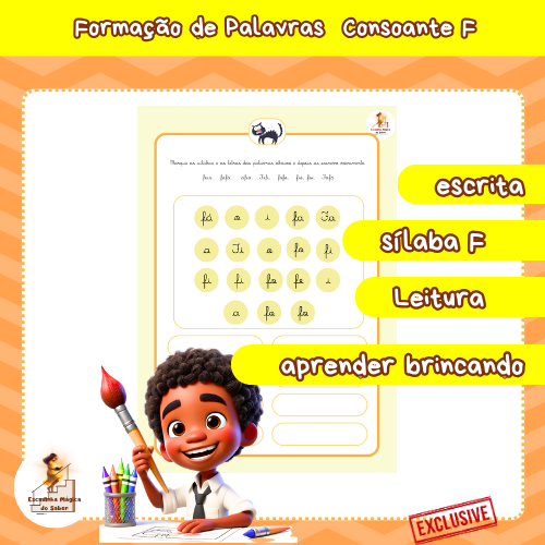 - Desenvolvimento fonológico: Trabalhar com a letra /F/ reforça a consciência dos sons, um aspecto essencial no processo de alfabetização.