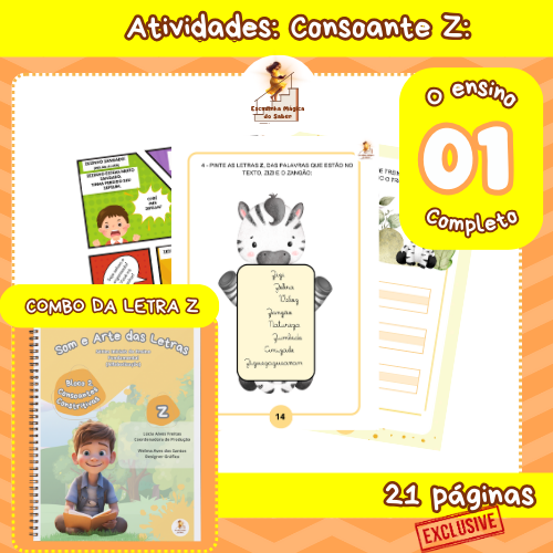 O Combo de Atividades da Letra /Z/ foi criado para facilitar o ensino dessa consoante constritiva, proporcionando uma experiência rica e integrada de aprendizado. Este material oferece recursos pedagógicos que vão desde o reconhecimento do som e da forma da letra, até práticas de leitura e escrita que envolvem as crianças em diferentes níveis de aprendizado. Com atividades dinâmicas e lúdicas, o combo estimula o interesse e a curiosidade dos alunos, promovendo um aprendizado gradual e significativo. As propostas incluem exercícios para o treino de sílabas e palavras, desafios interativos e leituras que trabalham a letra /Z/ de maneira divertida e contextualizada.