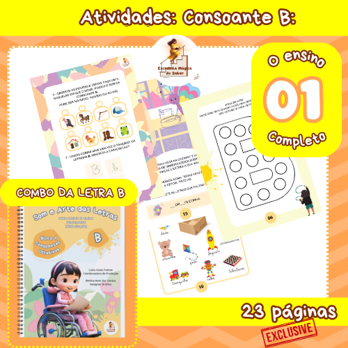 O Combo de Atividades da Letra /B/ foi cuidadosamente elaborado para oferecer uma abordagem pedagógica completa no ensino dessa consoante oclusiva. Este material combina práticas estruturadas e atividades lúdicas que promovem o aprendizado gradual do som, da forma e do uso da letra /B/ em contextos de leitura e escrita. Com propostas criativas, os alunos são incentivados a reconhecer e praticar a letra /B/ por meio de exercícios com sílabas, formação de palavras e frases, além de leituras interativas e desafios lúdicos. As atividades foram desenvolvidas para engajar as crianças, tornando o processo de aprendizagem leve e envolvente.