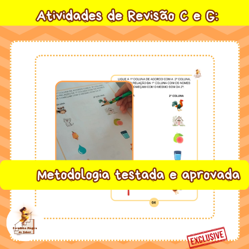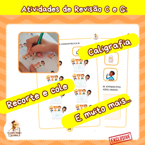 - Descrição: Os alunos irão buscar, recortar e colar letras C e G de jornais ou revistas, organizando-as em colunas específicas.