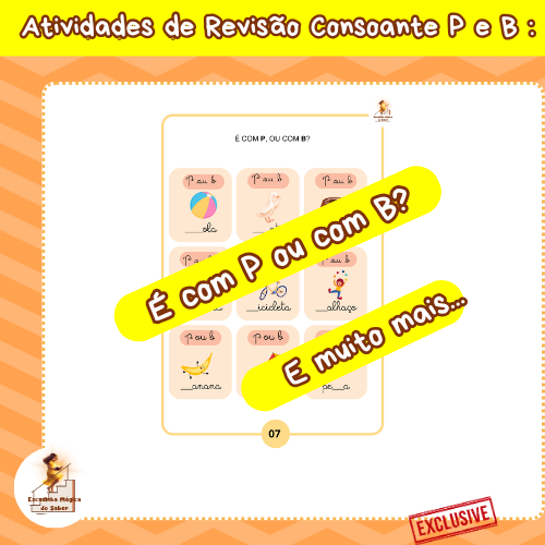 Estas atividades são eficazes para consolidar o aprendizado das consoantes P e B, ajudando a criança a dominar a leitura e escrita com confiança.