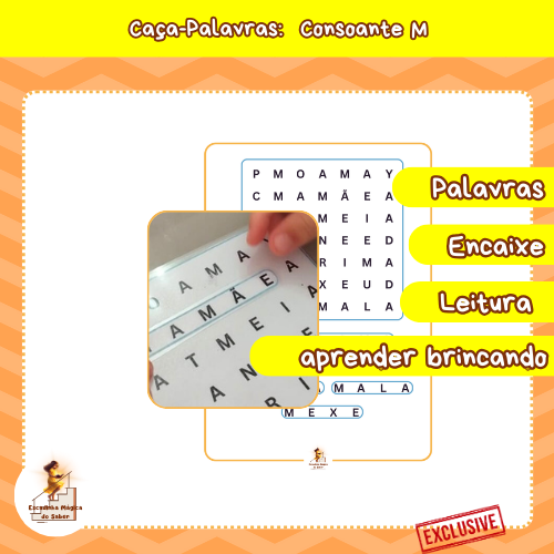 O Caça-Palavras Letra M é uma atividade interativa que une aprendizado e diversão. As crianças encontram palavras como AMA, MIA, MAMÃE, MEIA e muito mais, encaixando fichas nas posições corretas no quadro plastificado. Ideal para desenvolver a leitura e escrita das sílabas da letra M, a atividade é fácil de montar e alinhada à BNCC. Perfeita para a sala de aula ou momentos de aprendizado em casa.