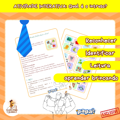 A atividade ‘Qual é o Intruso?’ oferece uma maneira criativa de trabalhar o som e a grafia da letra P enquanto mantém as crianças engajadas em uma brincadeira desafiadora. Ela combina alfabetização, lógica e observação, promovendo o aprendizado de forma lúdica e eficaz. Com um design atrativo e intuitivo, a atividade pode ser usada tanto em sala de aula quanto em casa, ajudando as crianças a se familiarizarem com palavras do dia a dia enquanto desenvolvem suas habilidades cognitivas e fonológicas.