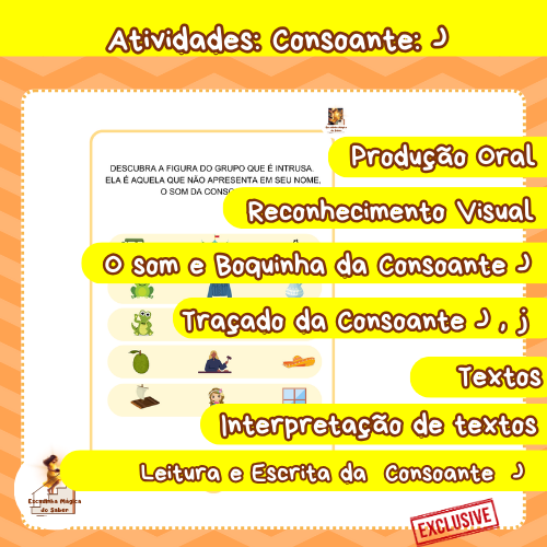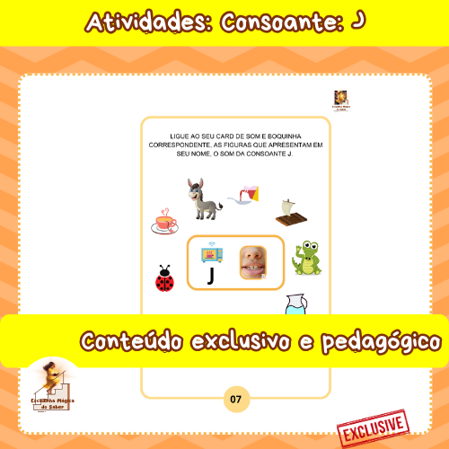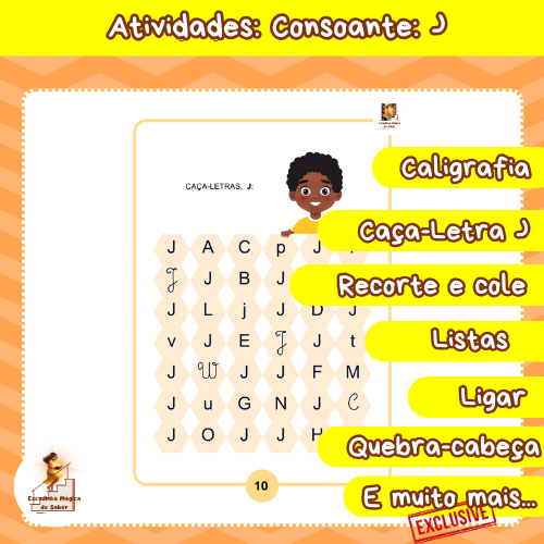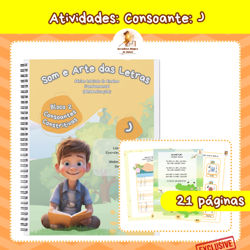 As atividades com a consoante /J/, possuem 21 páginas que foram elaboradas para facilitar o reconhecimento da sonoridade da letra e sua aplicação na leitura e escrita. Com exercícios práticos e criativos, como formar sílabas, completar palavras e ligar figuras a sons, os estudantes aprendem de maneira dinâmica e alinhada à BNCC. Uma abordagem que combina aprendizado e diversão!