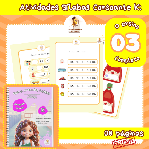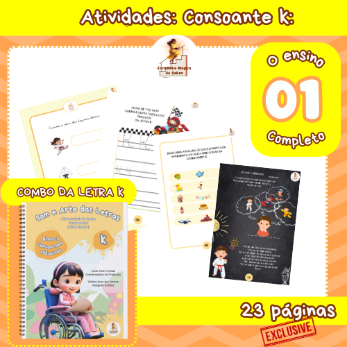 Explore o incrível Combo das Atividades da Consoante K! Aprenda e divirta-se com exercícios criativos que desenvolvem a leitura, a escrita e o reconhecimento da consoante K. Ideal para crianças em fase de alfabetização.