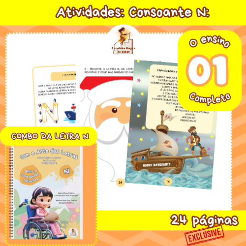 O Combo de Atividades com a Consoante Oclusiva /N/ é uma coletânea de práticas educativas projetadas para ensinar o som e a escrita da letra N, uma consoante oclusiva nasal. O som /N/ é produzido quando o ar sai pelo nariz enquanto a língua toca diferentes partes da boca, dependendo da palavra. As atividades do combo foram pensadas para tornar o aprendizado dinâmico e divertido, promovendo o desenvolvimento de habilidades fonológicas, de leitura e escrita