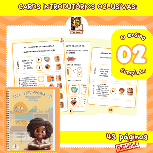 - Cards Introdutórios para apresentar as características sonoras e fonológicas das letras.