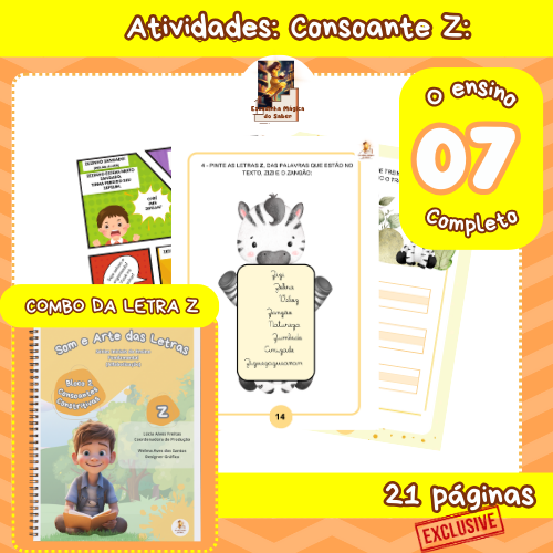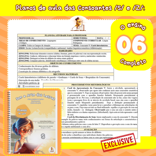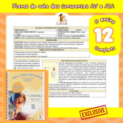 O Combo de Atividades das Consoantes Constritivas: S e Z é um material educativo que reúne recursos completos e variados para ensinar e fixar os sons dessas consoantes. Como constritivas, S e Z são sons formados pelo estreitamento do fluxo de ar, com a vibração (ou ausência dela) diferenciando palavras de pares mínimos.