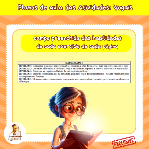 Chegou o recurso que vai transformar o ensino das vogais em uma experiência dinâmica e envolvente! Este plano de aula é mais que uma simples ferramenta: é uma solução prática e poderosa, desenvolvida para facilitar a sua rotina e garantir o sucesso dos seus alunos na aprendizagem das vogais.