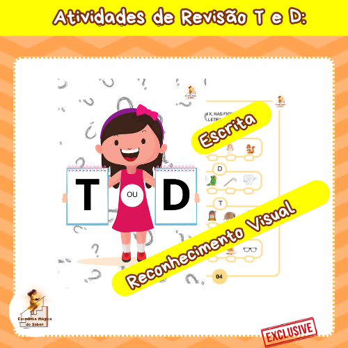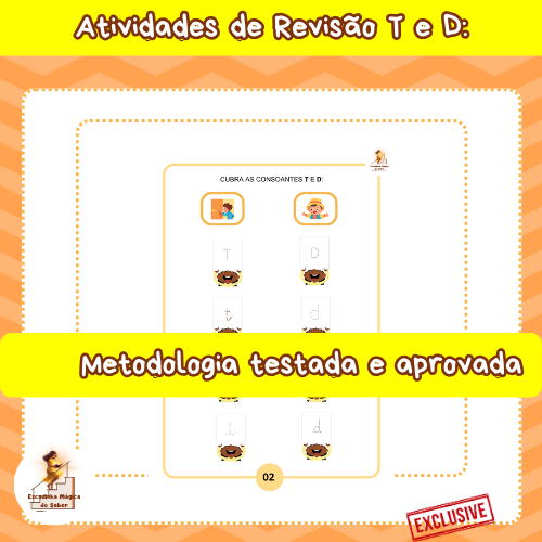 Estas atividades são eficazes para consolidar o aprendizado das consoantes T e D, ajudando a criança a dominar a leitura e escrita com confiança.