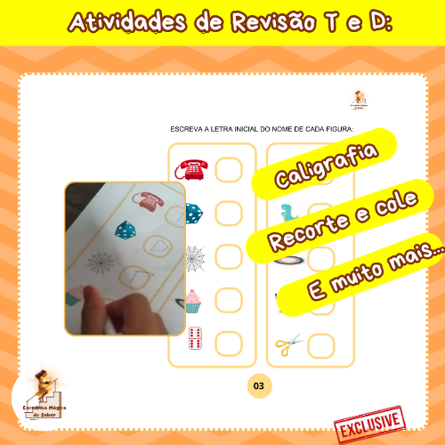 - Descrição: A criança pinta apenas figuras cujos nomes possuem a letra T ou D.